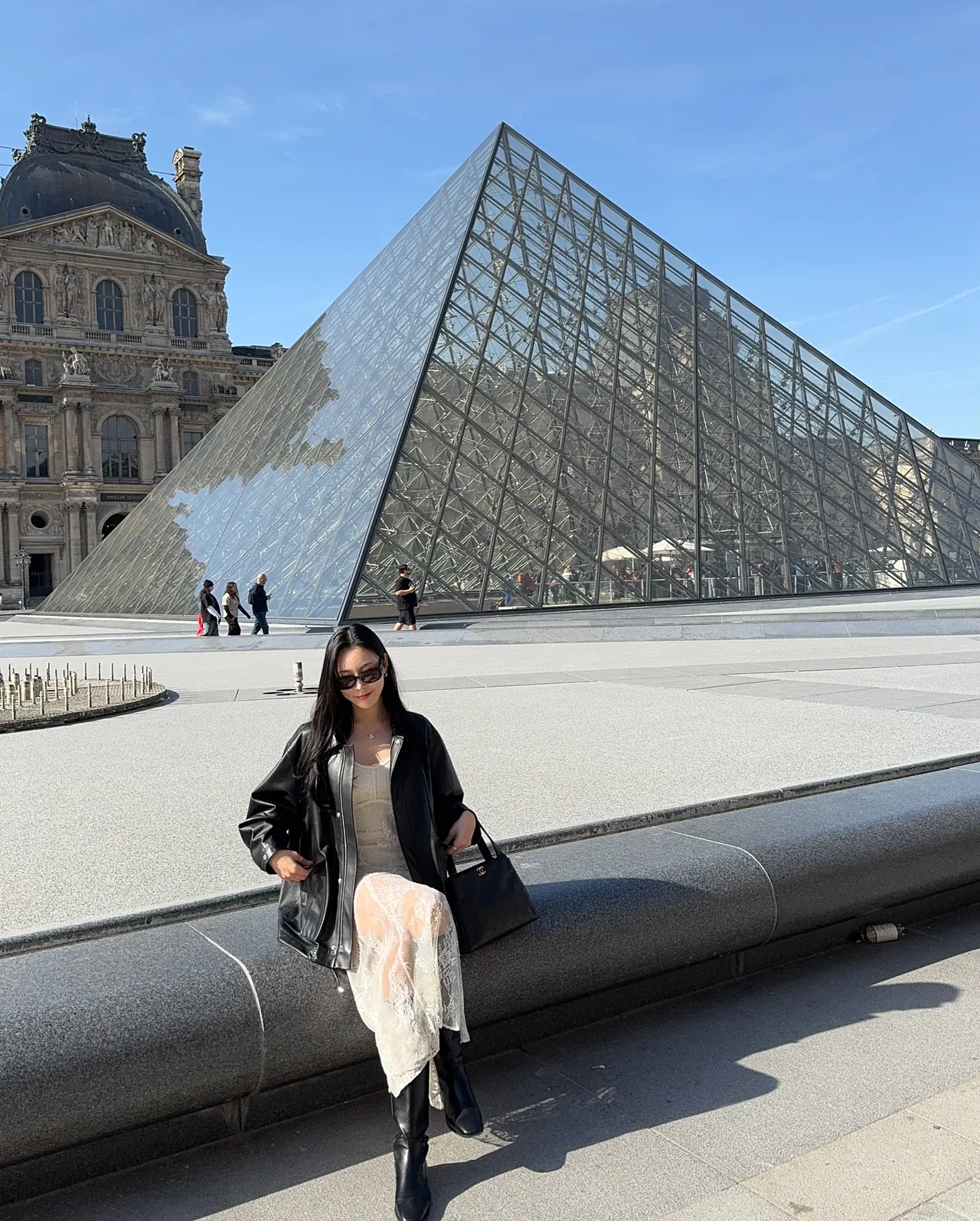 2년 만에 돌아온 파리... 강다나, 루브르 앞 우아한 블랙 앤 화이트 코디"