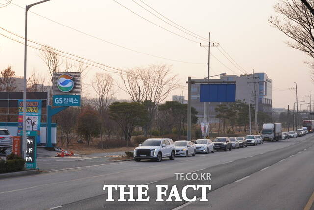 [포토] 조금이라도 싼 주유소 찾는 전주시민들…주유소 대기줄 '북적'