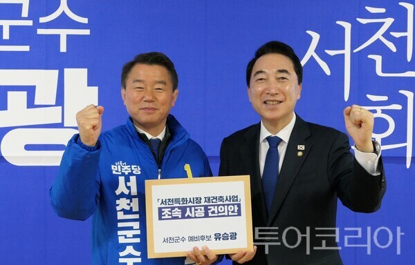 유승광 서천군수 후보, 박수현 만나 "서천특화시장 재건축 조속 추진" 건의