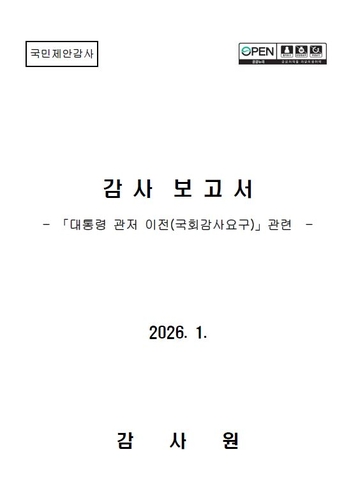 이 밖에 감사원은 대통령 관저 이전의 결정 경위 등도 확인했으나 특별히 확인된 사항은 없었다고 밝혔다.