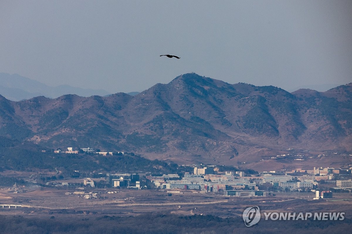 (파주=연합뉴스) 임병식 기자 = 북한이 한국 무인기 침투를 주장하고 있는 가운데 11일 경기도 파주시 접경지역에서 바라본 비무장지대(DMZ) 상공에서 독수리가 남북을 가르며 비행하고 있다. 2026.1.11 andphotodo@yna.co.kr
