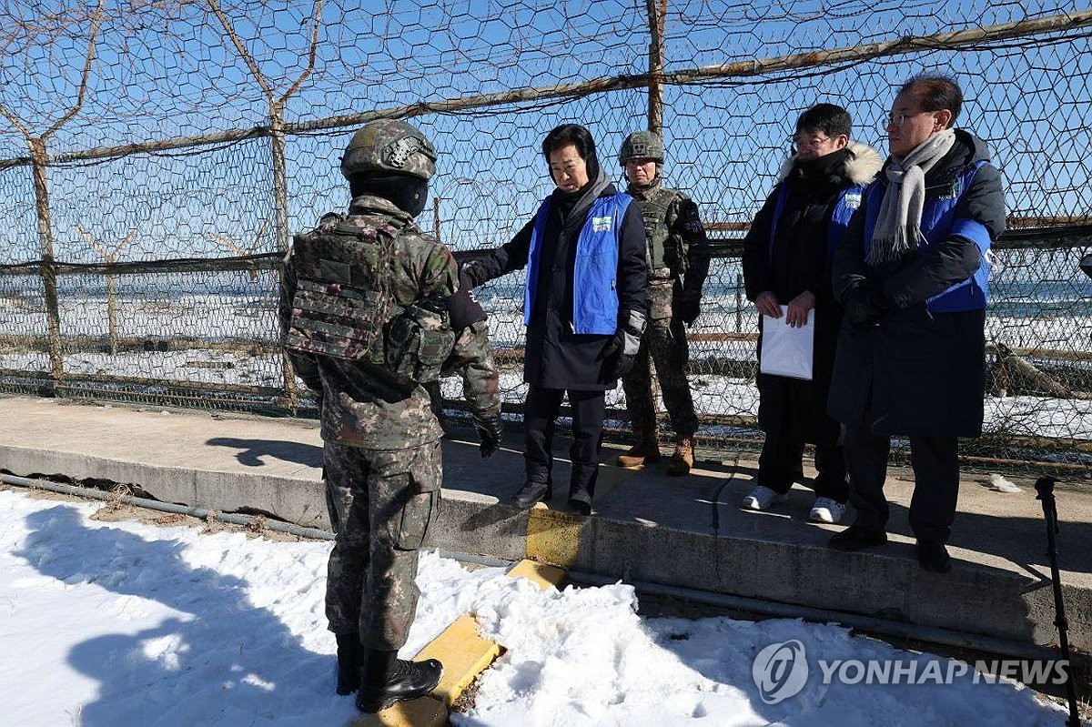 (서울=연합뉴스) 정동영 통일부 장관이 21일 DMZ 평화의 길 강원 고성 구간과 동해선 남북출입사무소 등을 방문, 장병들을 격려하고 있다. 2026.1.21 [통일부 제공. 재판매 및 DB 금지] photo@yna.co.kr