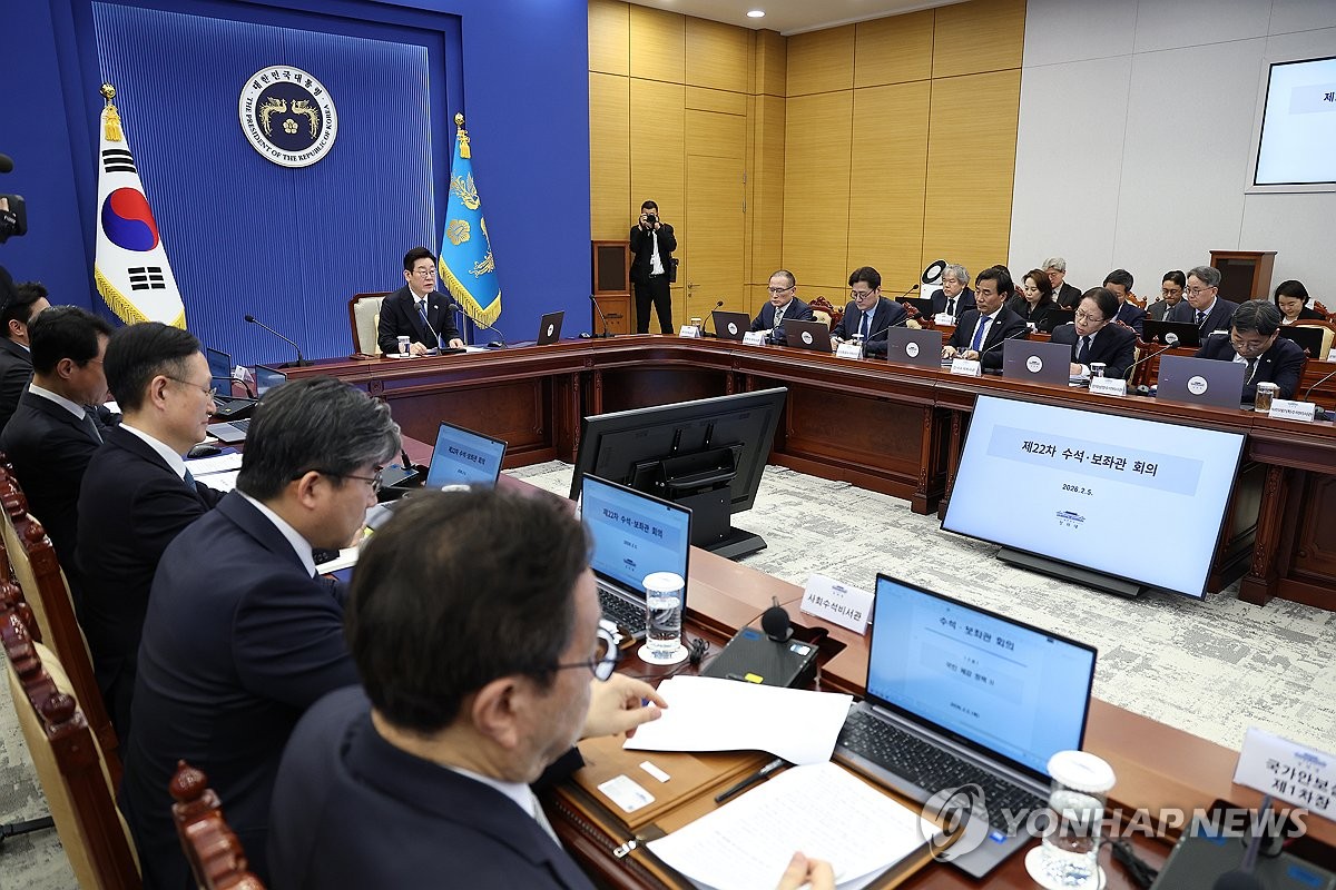 (서울=연합뉴스) 김도훈 기자 = 이재명 대통령이 5일 청와대 여민관에서 열린 수석보좌관회의를 주재하고 있다. 2026.2.5 superdoo82@yna.co.kr