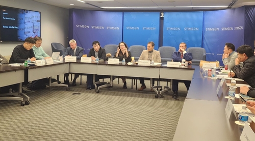 (워싱턴=연합뉴스) 박성민 특파원 = 미국 싱크탱크인 스팀슨센터가 9일(현지시간) 워싱턴DC의 센터 사무실에서 한국 특파원단과 '한국 언론의 날' 행사를 하고 있다. 2026.2.9. min22@yna.co.kr