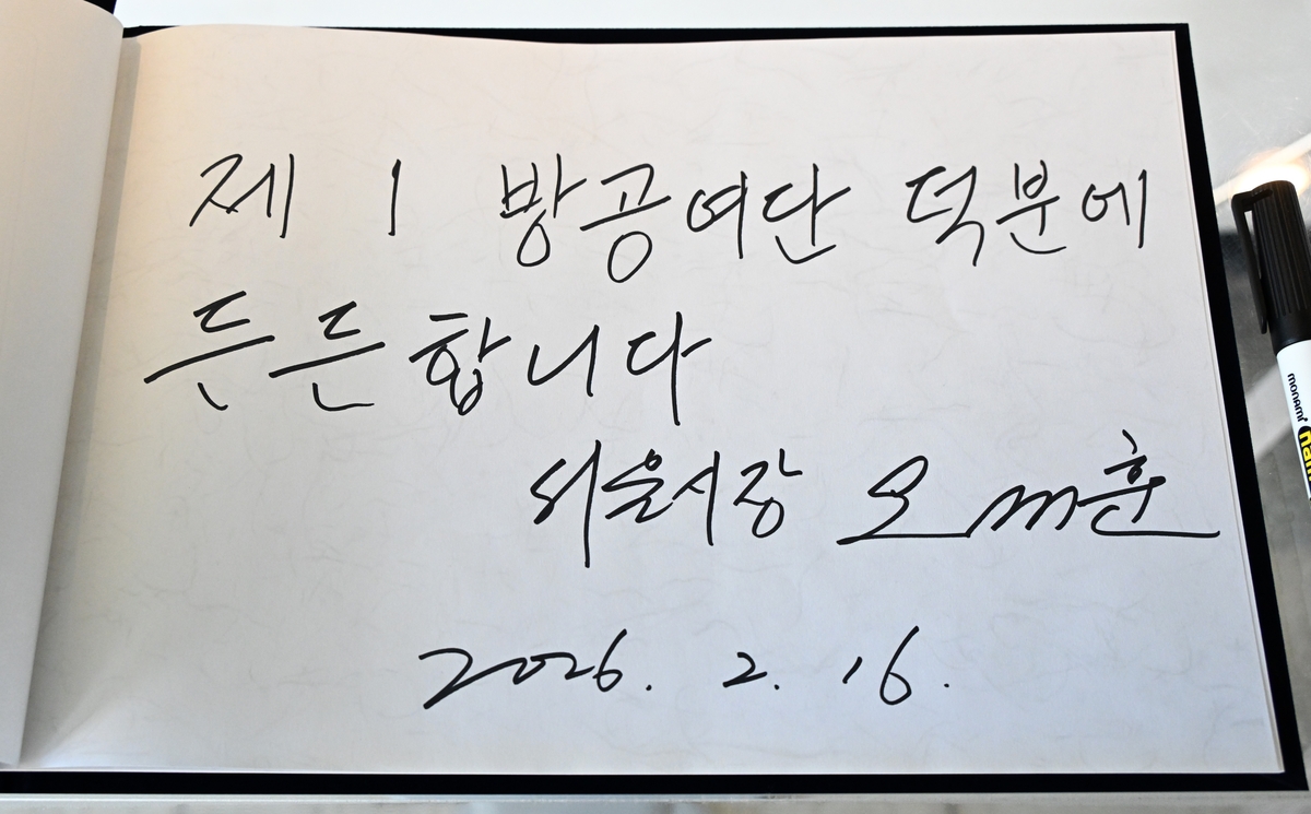 1방공여단 방공진지에 남긴 오세훈 서울시장이 남긴 방명록. [서울시 제공. 재판매 및 DB 금지]