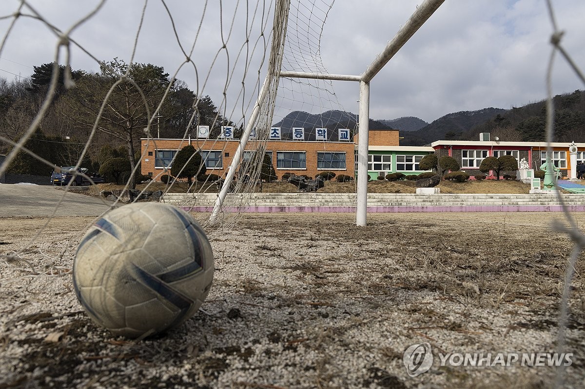 (포천=연합뉴스) 임병식 기자 = 25일 오전 경기도 포천시 관인면 중리초등학교에서 축구공이 덩그러니 놓여 있다. 경기도교육청에 따르면 1955년 개교한 포천 중리초는 신학기 신입생이 없어 오는 3월 1일 자로 폐교된다. 2025.2.25 andphotodo@yna.co.kr