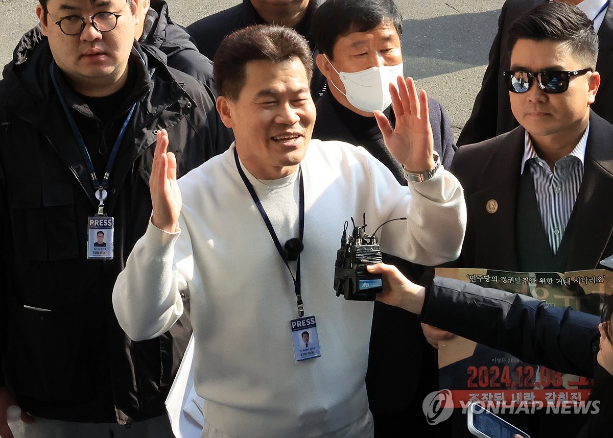 (서울=연합뉴스) 최재구 기자 = 전 한국사 강사 전한길씨가 이재명 대통령 명예훼손 혐의로 조사를 받기 위해 12일 서울 동작경찰서로 출석 하며 기자의 질문에 답하고 있다. 2026.2.12 jjaeck9@yna.co.kr