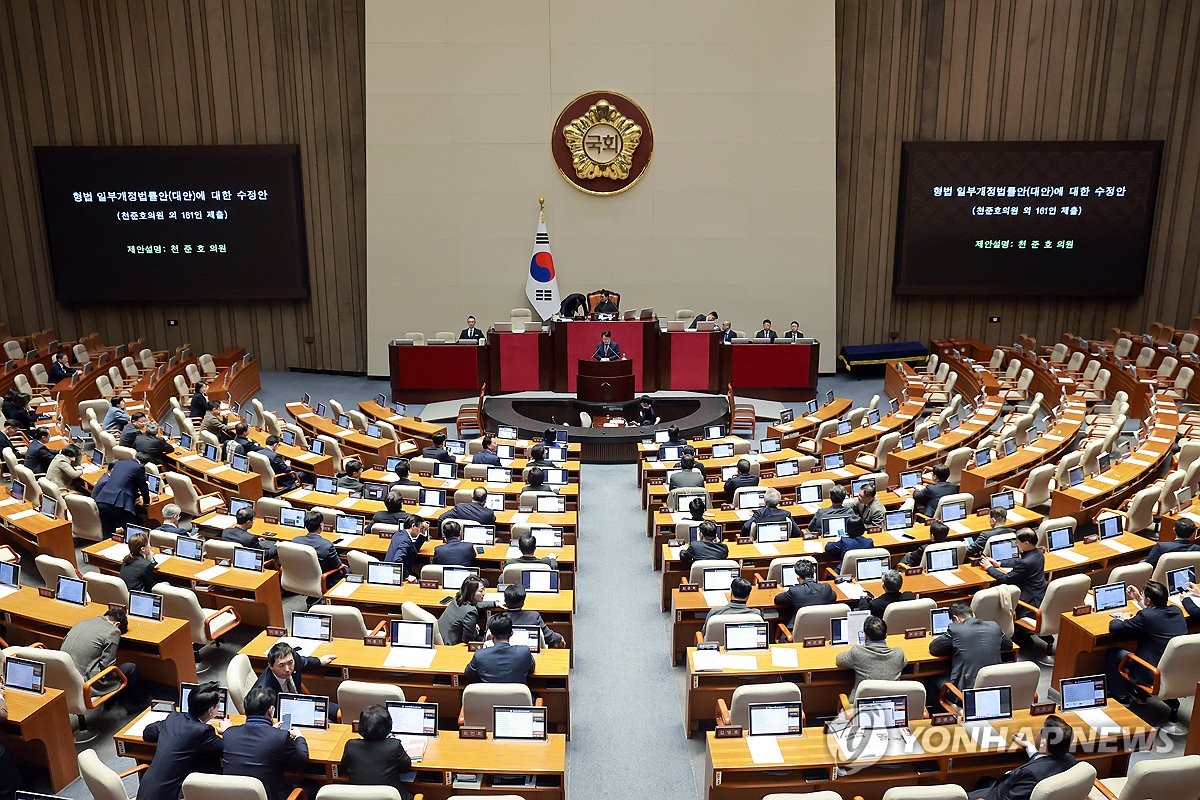 (서울=연합뉴스) 박재하 기자 = 국회는 26일 본회의에서 더불어민주당이 추진하는 3대 사법개혁안 중 하나인 '법 왜곡죄법'(형법 개정안) 표결에 나선다.