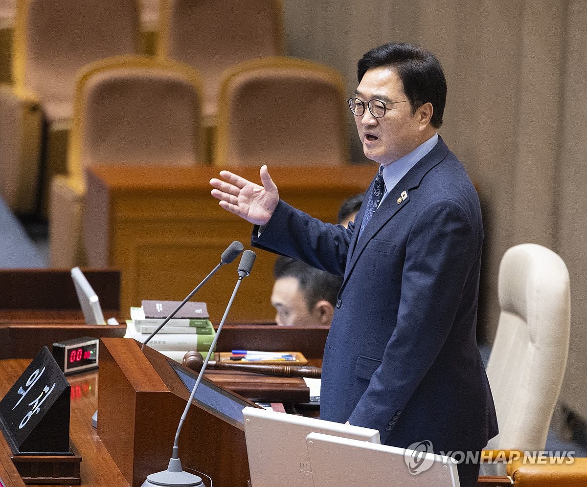 (서울=연합뉴스) 황광모 기자 = 우원식 국회의장이 26일 국회에서 열린 2월 임시국회 8차 본회의에서 국민의힘 몫의 천영식 방송미디어통신위원회 위원 후보자의 추천안이 부결된 뒤 비속어 사용을 놓고 국민의힘 의원들이 강력히 항의하자 이에 대해 답하고 있다. 2026.2.26 hkmpooh@yna.co.kr