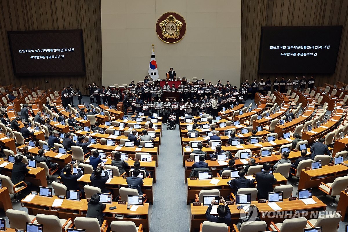서울=연합뉴스) 서혜림 박수윤 노선웅 정연솔 기자 = 현행 14명인 대법관 수를 26명으로 늘리는 내용의 법안이 주말인 28일 여당 주도로 국회 본회의를 통과했다.