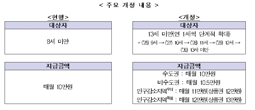 비수도권 및 인구감소지역에 거주하는 아동에게는 매월 2만원 범위 내에서 아동수당을 추가 지급하기로 했다.