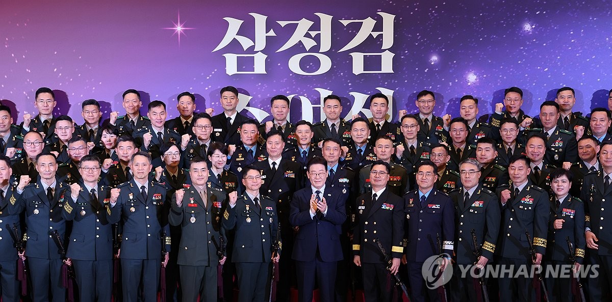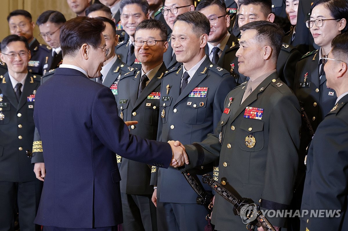 (서울=연합뉴스) 황윤기 기자 = 이재명 대통령은 6일 채상병 순직 사건을 조사하고 외압에 저항했던 박정훈 국방부 조사본부장을 비롯한 준장 진급자들에게 삼정검(三精劍)을 수여했다.