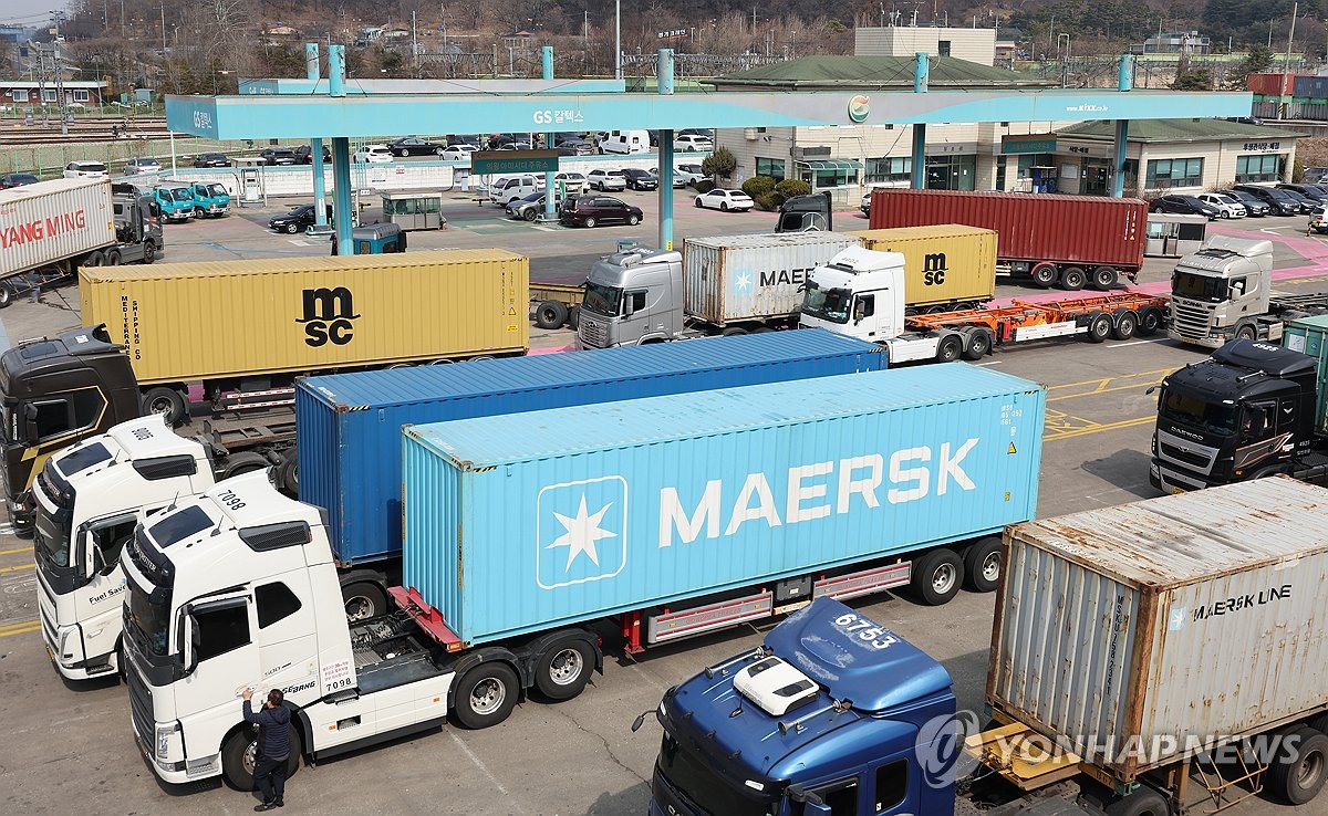 (의왕=연합뉴스) 이진욱 기자 = 국제유가가 배럴당 100달러를 돌파한 가운데 9일 경기도 의왕시 의왕ICD 터미널 주유소 앞에 화물차들이 대기해 있다. 2026.3.9 cityboy@yna.co.kr