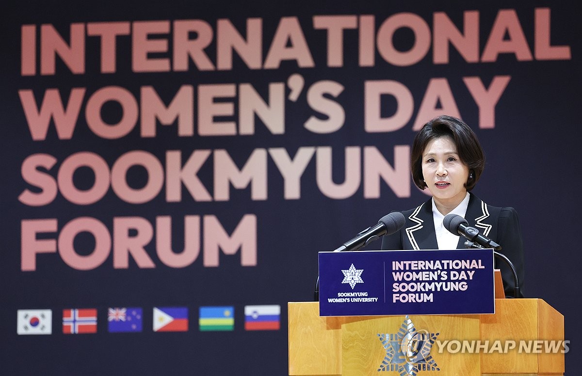 김 여사는 이날 숙명여대에서 열린 '2026 세계여성의 날 기념 숙명 국제포럼'에 참석, 축사를 통해 "여성 교육과 리더십에 대한 지속적인 투자, 다음 세대를 위한 공정한 기회의 확장이 그 어느 때보다 중요하다"고 말했다.