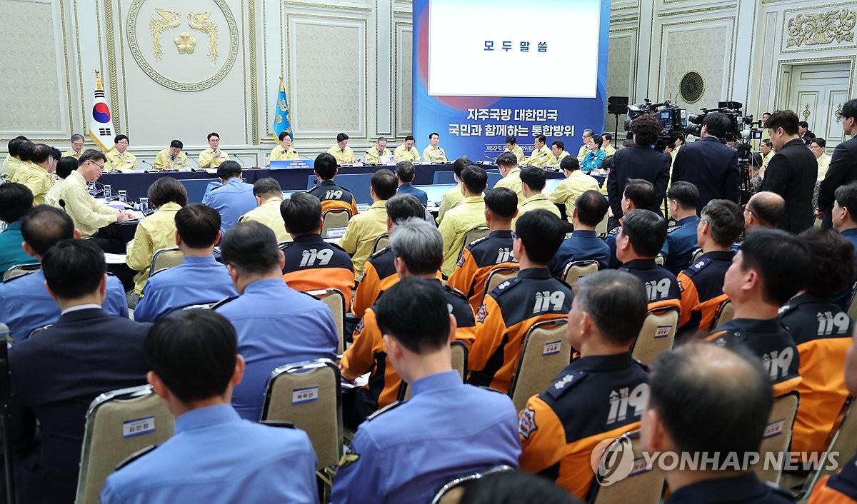 이 대통령은 "오늘날 안보 정세가 복잡해지며 군사적 위협뿐 아니라 사이버 공격, 테러, 기후위기, 재난 등 비군사적 위협에 대해서도 비상하게 대응해야 하는 상황"이라며 "민·관·군·경·소방 등 모든 방위요소가 일사불란하게 대응해야 국가와 국민을 지킬 수 있다"고 유기적 협조체계 구축을 당부했다.