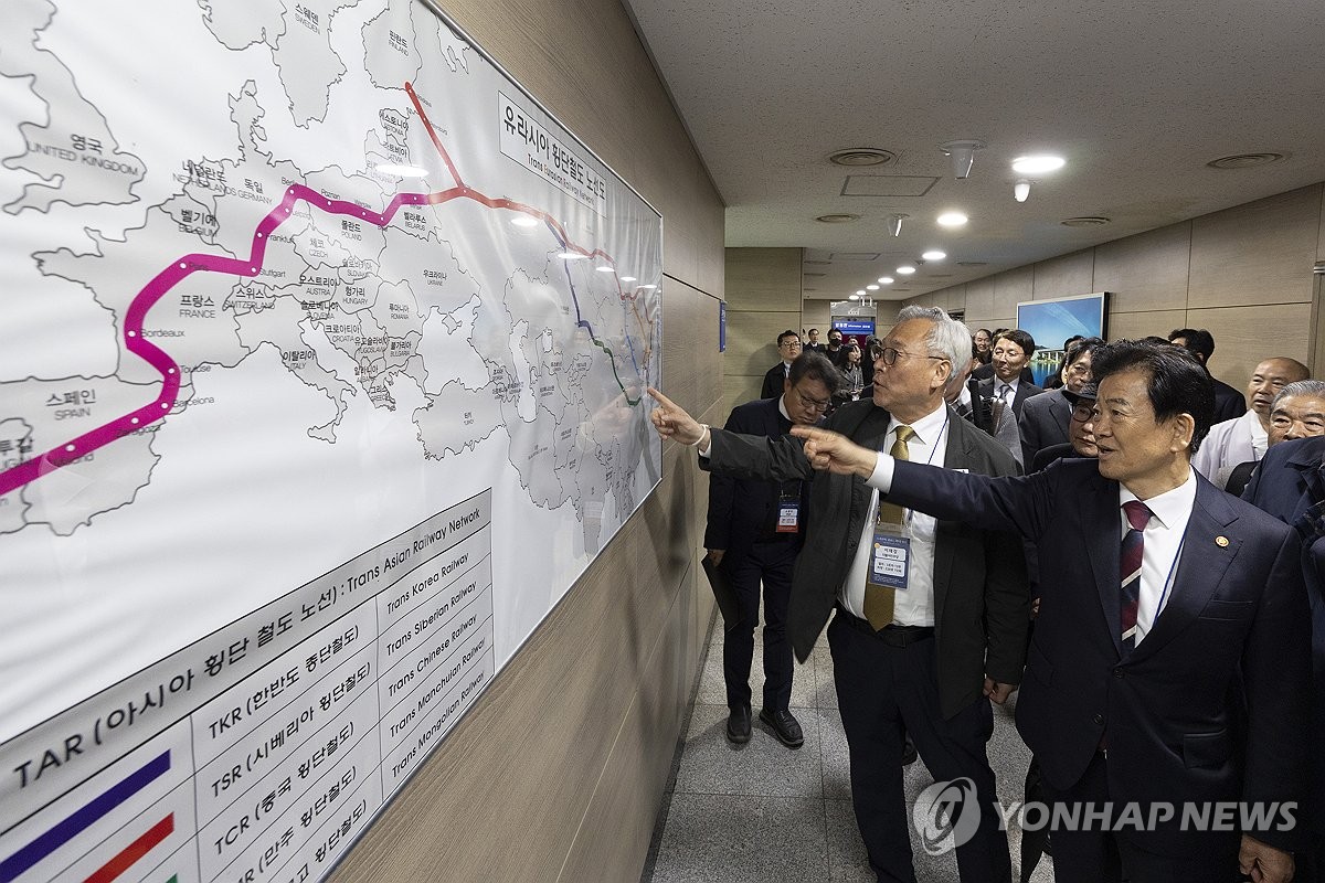 경기도 평화부지사를 지낸 이재강 의원은 열차 내에서 "남북 철도가 연결되면 (서울에서) 런던까지 기차로 14일이면 갈 수 있다"며 "이 길은 통일로 가는 길이면서 동시에 대한민국 경제에 황금열쇠가 되는 길이기도 하다"고 말했다.