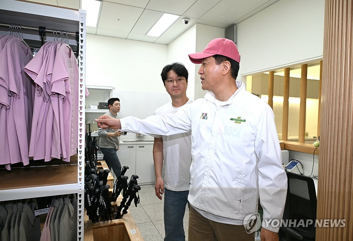 (서울=연합뉴스) 오세훈 서울시장이 19일 서울등산관광센터 관악산점을 방문해 센터 내부를 점검하고 있다. 2026.4.19 [서울시 제공. 재판매 및 DB 금지] photo@yna.co.kr