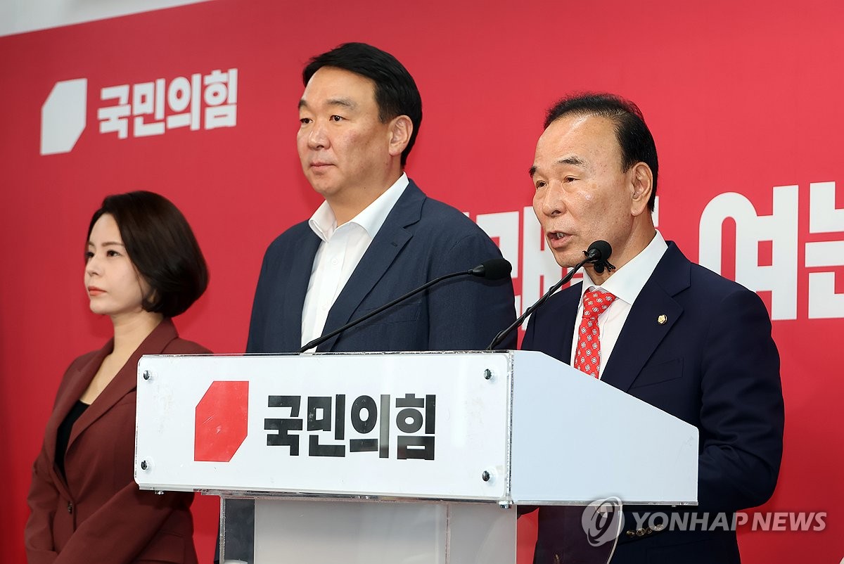 (서울=연합뉴스) 배재만 기자 = 국민의힘 박덕흠 공천관리위원장이 26일 서울 여의도 당사에서 브리핑을 열고 6·3 지방선거 대구시장 후보에 추경호 의원을 확정했다고 밝히고 있다. 2026.4.26 scoop@yna.co.kr