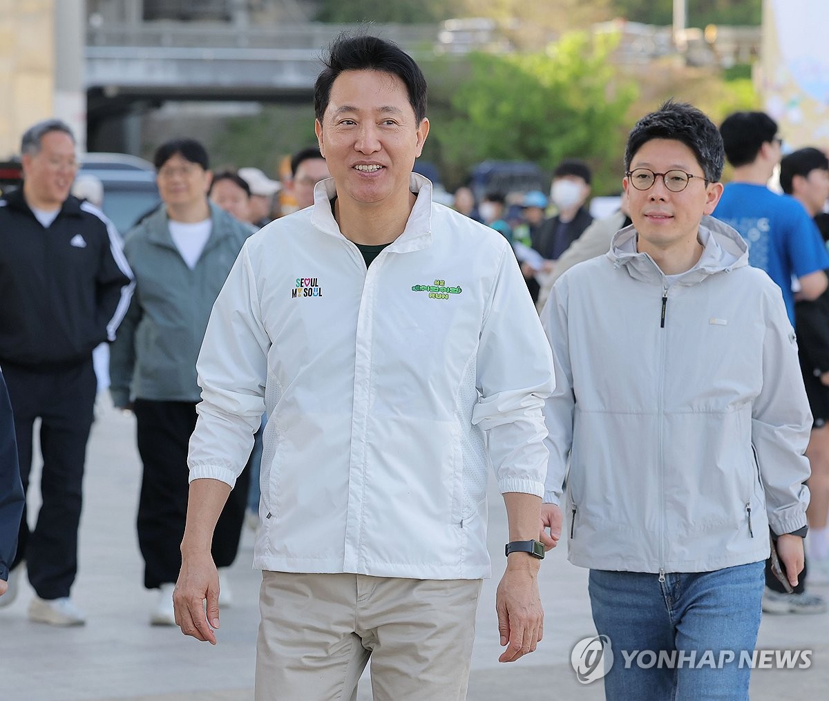 (서울=연합뉴스) 류영석 기자 = 오세훈 서울시장이 26일 쉬엄쉬엄 모닝 행사가 열린 서울 잠수교를 걸어가고 있다. 2026.4.26 ondol@yna.co.kr