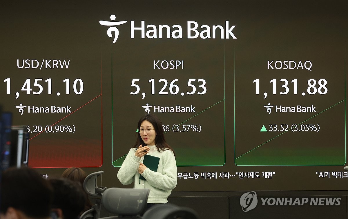 (서울=연합뉴스) 박동주 기자 = 3일 장 초반 코스피200선물 지수가 5% 넘게 치솟으면서 프로그램 매수호가 일시 효력정지(사이드카)가 발동됐다. 사진은 이날 서울 중구 하나은행 딜링룸에서 직원이 업무를 보고 있는 모습. 2026.2.3 pdj6635@yna.co.kr