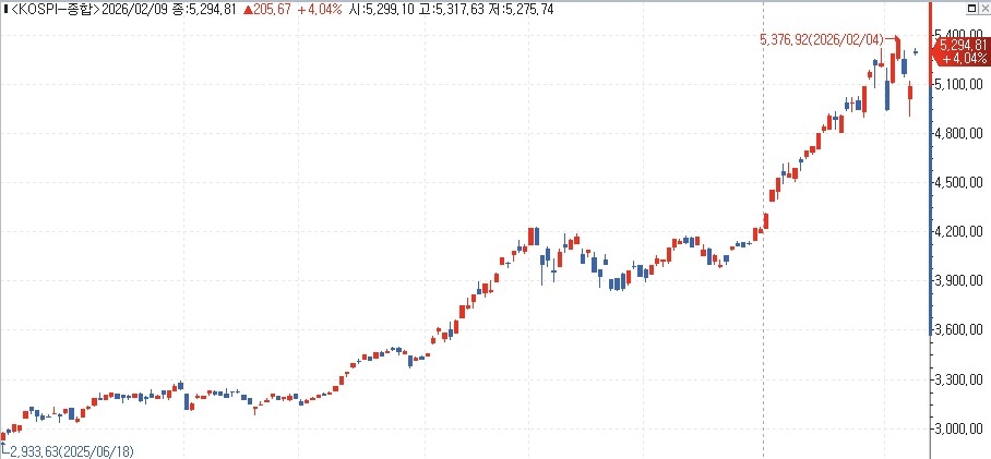 지수는 전장보다 209.96포인트(4.13%) 오른 5,299.10로 출발해 한때 5,317.63까지 상승하기도 했다.