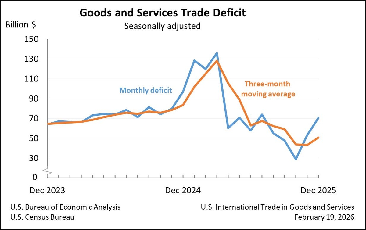 내이션와이드 파이낸셜마켓의 오렌 클라크킨 이코노미스트는 투자자 노트에서 "관세 관련 소식이 쏟아지면서 교역이 요동쳤지만 정작 2025년 한 해 적자 폭 축소는 거의 미미했다"라고 평가했다.