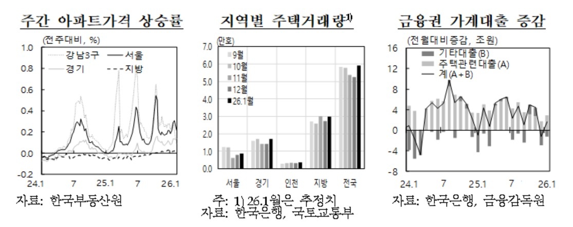 이어 "서울 아파트 가격이 1월 들어 연율 환산 10%를 상회하는 등 높은 상승세를 지속했다"며 "특히 강남 3구 등 핵심지보다 서울 외곽 및 경기 등 주변 지역의 가격 오름폭이 더 크게 확대되는 모습"이라고 진단했다.