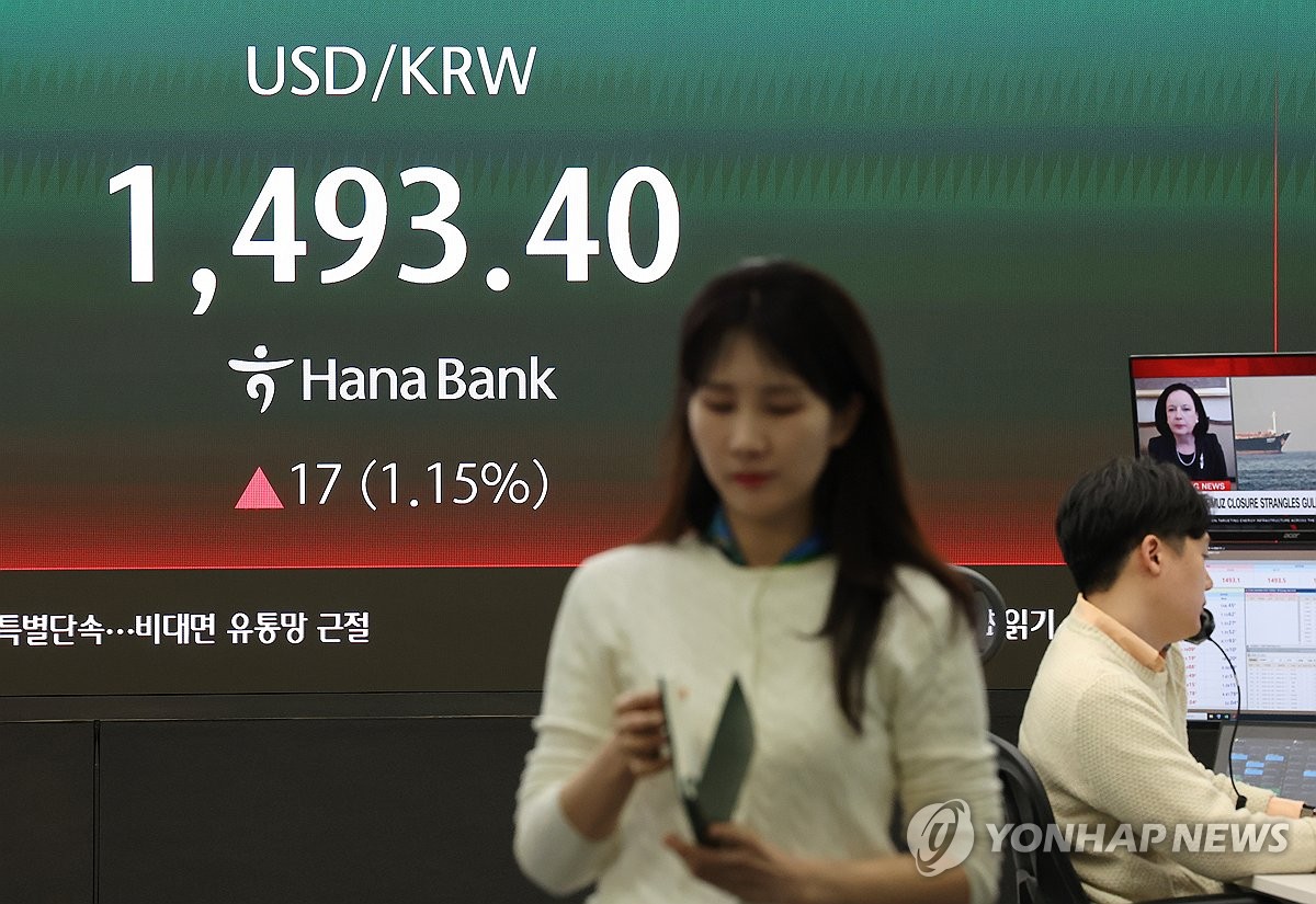 이날 환율은 16.6원 급등한 1,493.0원으로 출발해 오전 10시 22분께 1,499.2원까지 올랐다. 장중 고가 기준으로도 금융위기(2009년 3월 12일·장중 최고 1,500.0원) 이후 최고 기록을 갈아치웠다.