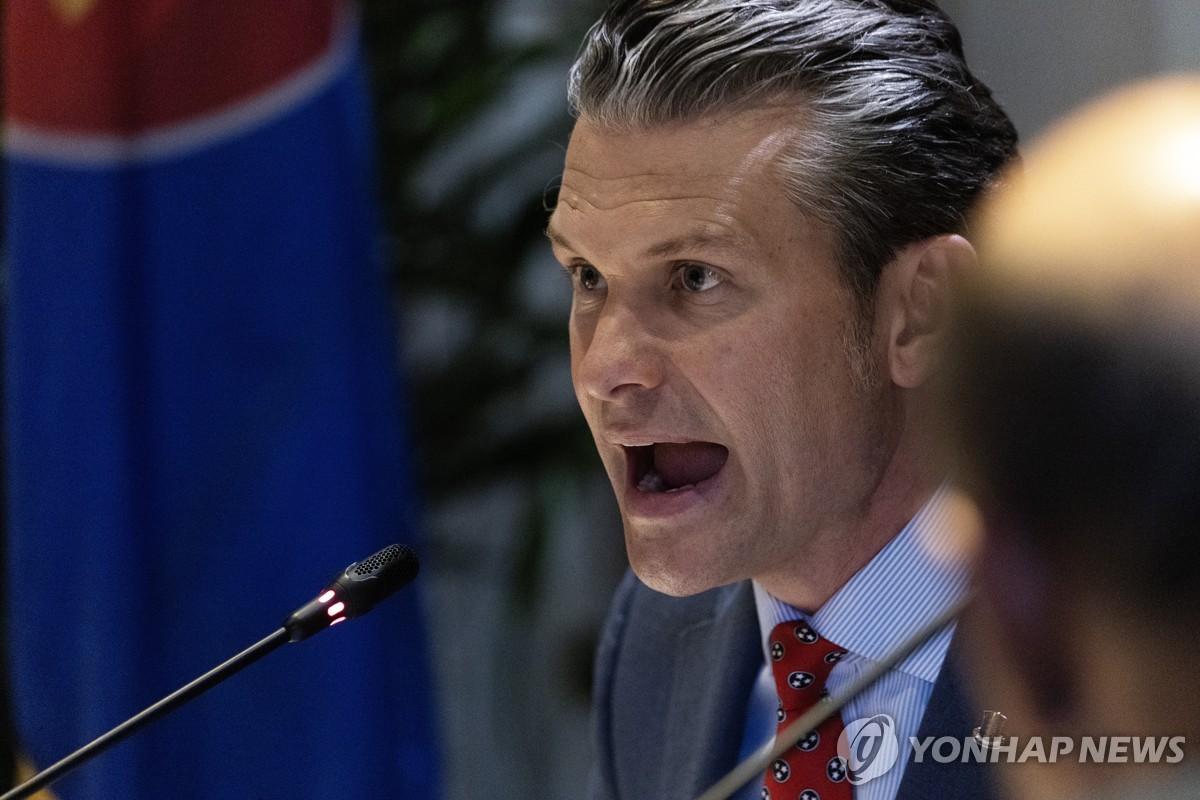 (싱가포르 EPA=연합뉴스) 20205년 5월 30일 싱가포르에서 열린 '국제전략문제연구소(IISS) 샹그릴라 대화 국방정상회의' 행사의 부대행사로 열린 아세안(ASEAN) 국방장관 회의에 참석한 피트 헤그세스 미국 국방장관이 발언하고 있다. (EPA/HOW HWEE YOUNG) 2026.3.14.