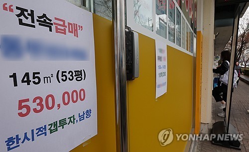 서울 강남구 한 부동산 중개업소에 붙은 급매물 광고[연합뉴스 자료사진]
