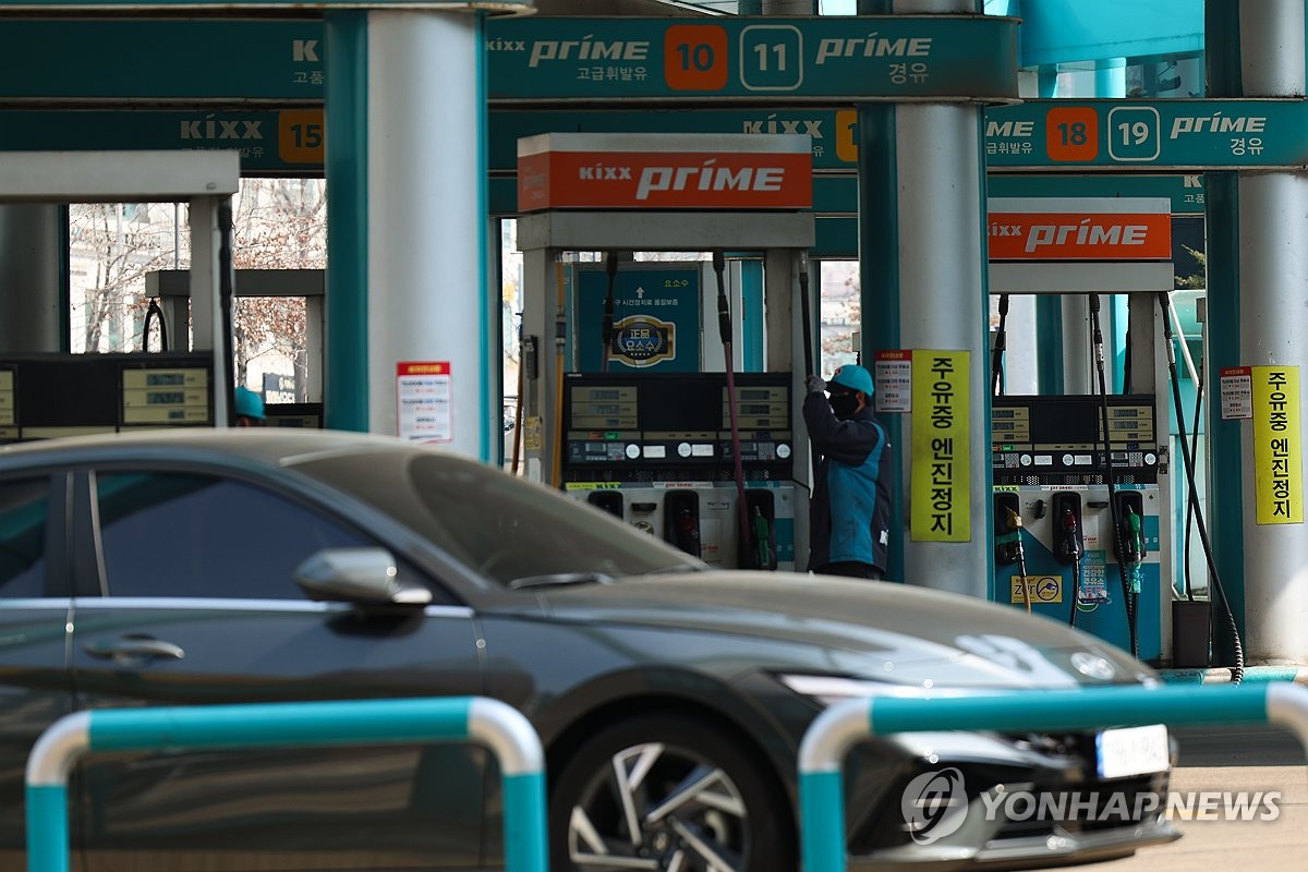 (서울=연합뉴스) 류효림 기자 = 지난달 미국·이란 갈등으로 국제 유가가 오르자 우리나라 수입 제품의 전반적 가격 수준(원화 환산 기준)도 1% 이상 높아졌다. 한국은행이 17일 발표한 수출입물가지수 통계에 따르면 2월 기준 수입물가지수(원화 기준 잠정치·2020년 수준 100)는 145.39로, 1월(143.74)보다 1.1% 상승했다. 작년 7월 이후 8개월 연속 오름세다. 사진은 이날 서울 시내 주유소 모습. 2026.3.17 ryousanta@yna.co.kr
