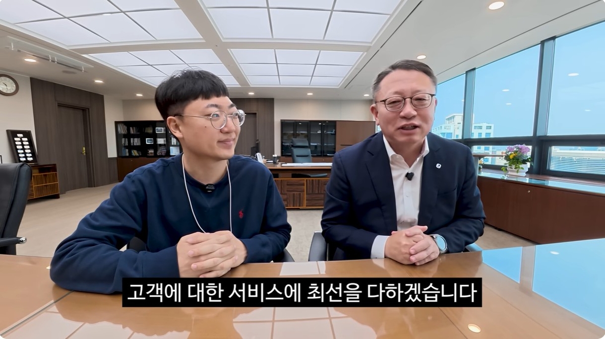 유튜버 김선태 씨(왼쪽)와 정진완 우리은행장 [유튜브 화면 캡처]