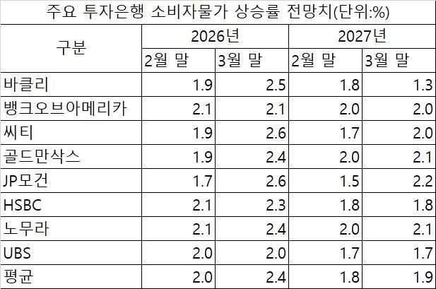 뱅크오브아메리카(2.1%)와 UBS(2.0%)를 제외한 나머지 IB 6곳이 모두 전망치를 2.0% 중반대로 높였다.