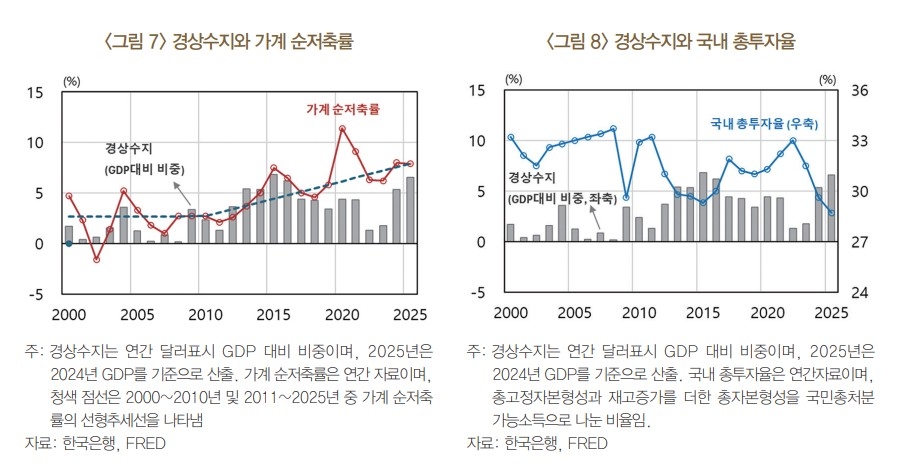 저축률 상승도 경상수지 흑자와 환율 상승이 동시에 나타나는 배경으로 분석됐다.