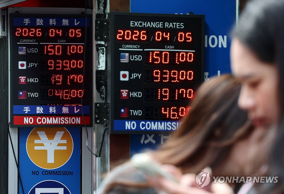 (서울=연합뉴스) 김주형 기자 = 지난 5일 서울 중구 명동 일대 환전소 모습. 2026.4.5 kjhpress@yna.co.kr