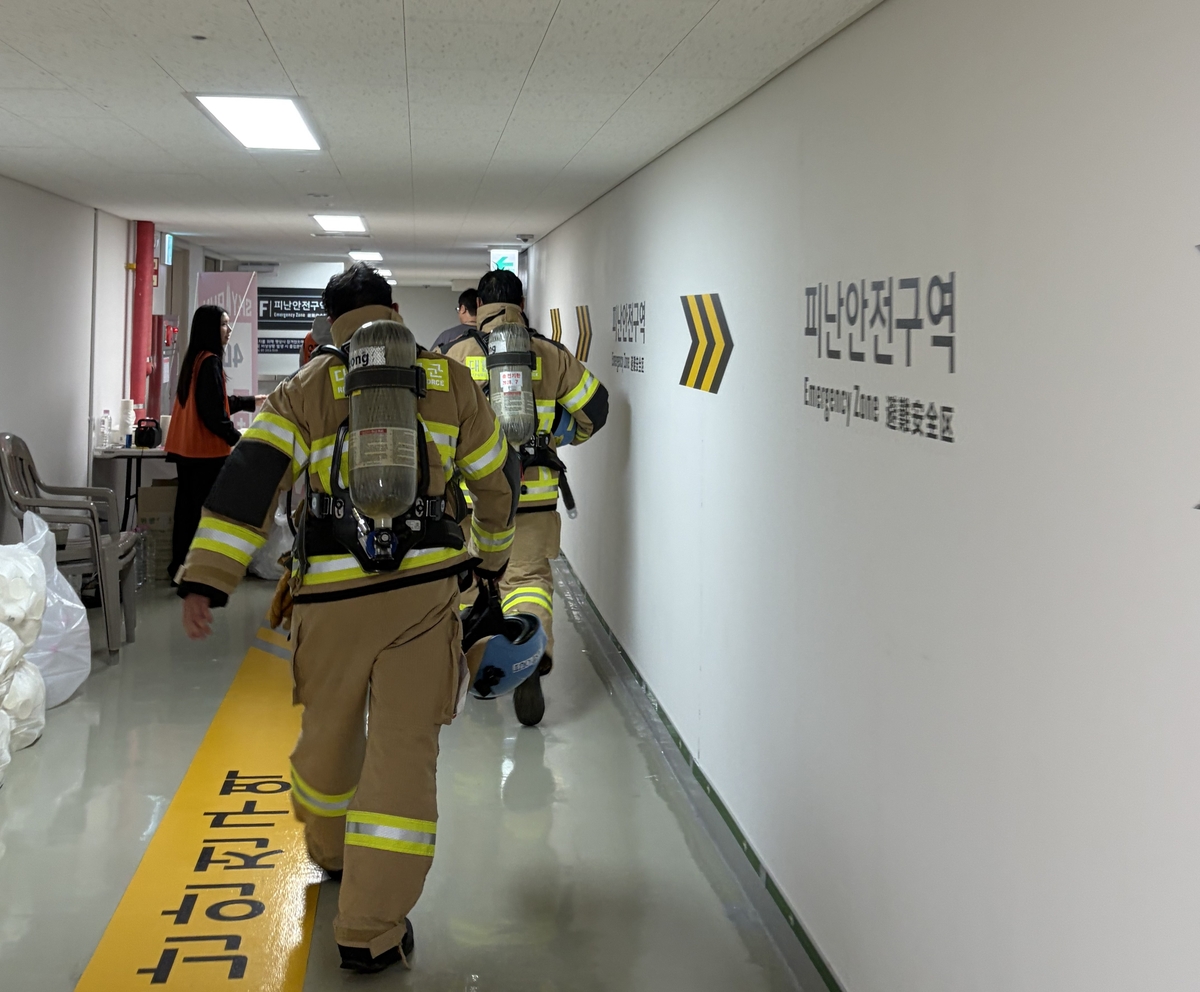 방화복과 헬멧, 산소통을 모두 착용하고도 묵묵히 오르는 소방관들의 모습을 보니 발걸음이 다시 자연스럽게 계단으로 향했다.