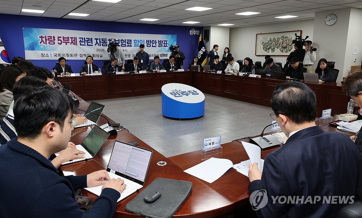 더불어민주당 중동전쟁 경제대응 특별위원회와 금융위원회, 손해보험협회 등은 27일 오전 서울 여의도 국회의원회관에서 이 같은 내용을 골자로 한 차량 2·5부제 관련 자동차보험료 할인 방안을 발표했다.