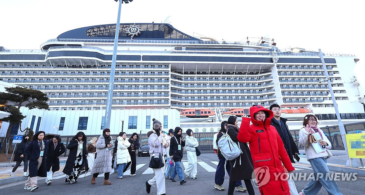 (인천=연합뉴스) 임순석 기자 = 중국의 '한일령'(限日令) 여파로 중국발 크루즈 인천항 입항이 급증하고 있는 가운데 6일 오전 인천 연수구 국제크루즈터미널에 입항한 MSC 벨리시마호(17만t급) 승객 중국인 관광객 3000여명이 입국하고 있다. 2026.2.6 soonseok02@yna.co.kr