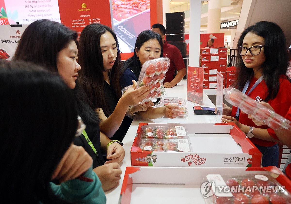 7일 오후 1시(현지시간)께 논산 농식품 해외박람회가 열리는 인도네시아 자카르타 간다리아 시티몰에서 만난 나그미(Nagmi·28) 씨는 비타베리와 킹스베리 등 논산딸기가 가득 담긴 쇼핑백 6개를 들어 보였다.