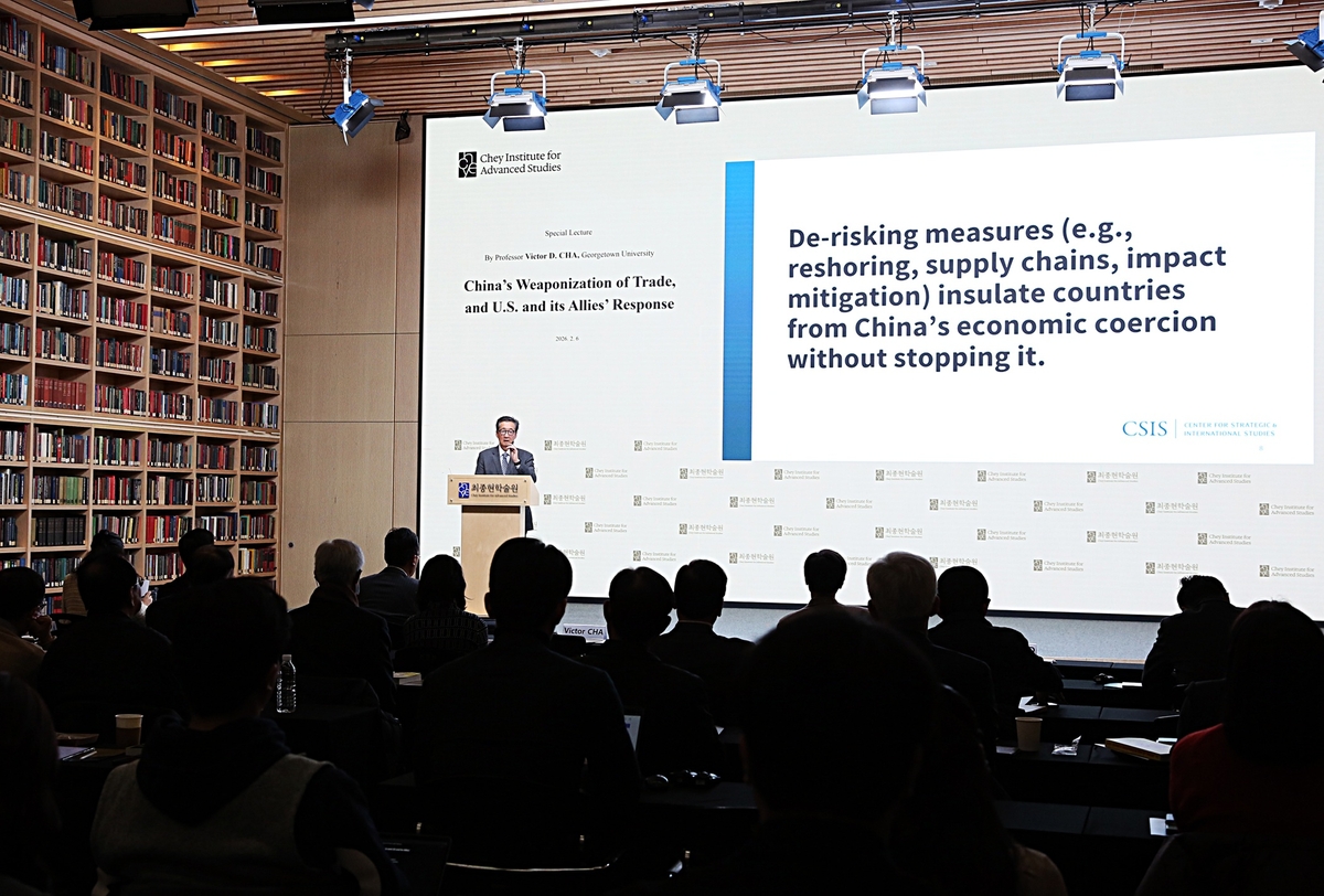 빅터 차 미국 전략국제문제연구소(CSIS) 지정학·외교정책 담당 소장이자 조지타운대 석좌교수는 지난 6일 서울 강남구 최종현학술원에서 열린 특별강연에서 최근 출간한 저서 '중국의 무역 무기화'를 소개하며 이같이 밝혔다.