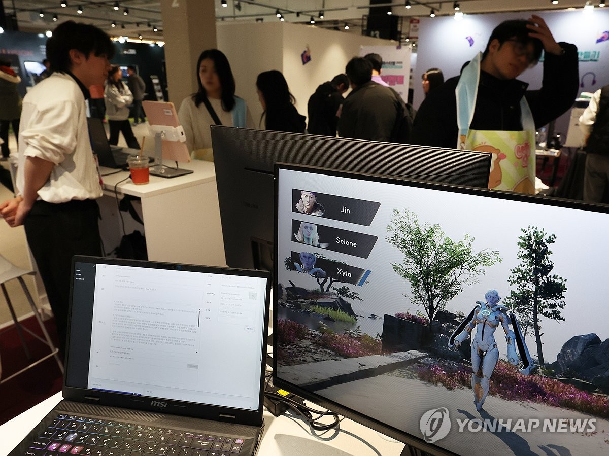 (서울=연합뉴스) 강민지 기자 = 4일 서울 강남구 코엑스 더플라츠에서 열린 'AI콘텐츠 페스티벌'에서 참관객들이 AI를 통해 스토리를 제작한 게임을 체험하고 있다. 2025.12.4 mjkang@yna.co.kr