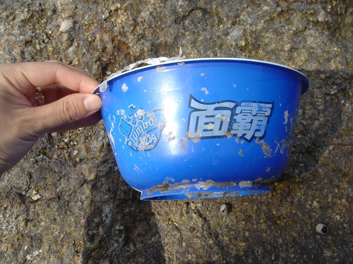 중국에서 제조된 즉석 면 용기가 해류를 따라 한국 연안까지 흘러 들어온 것이다.