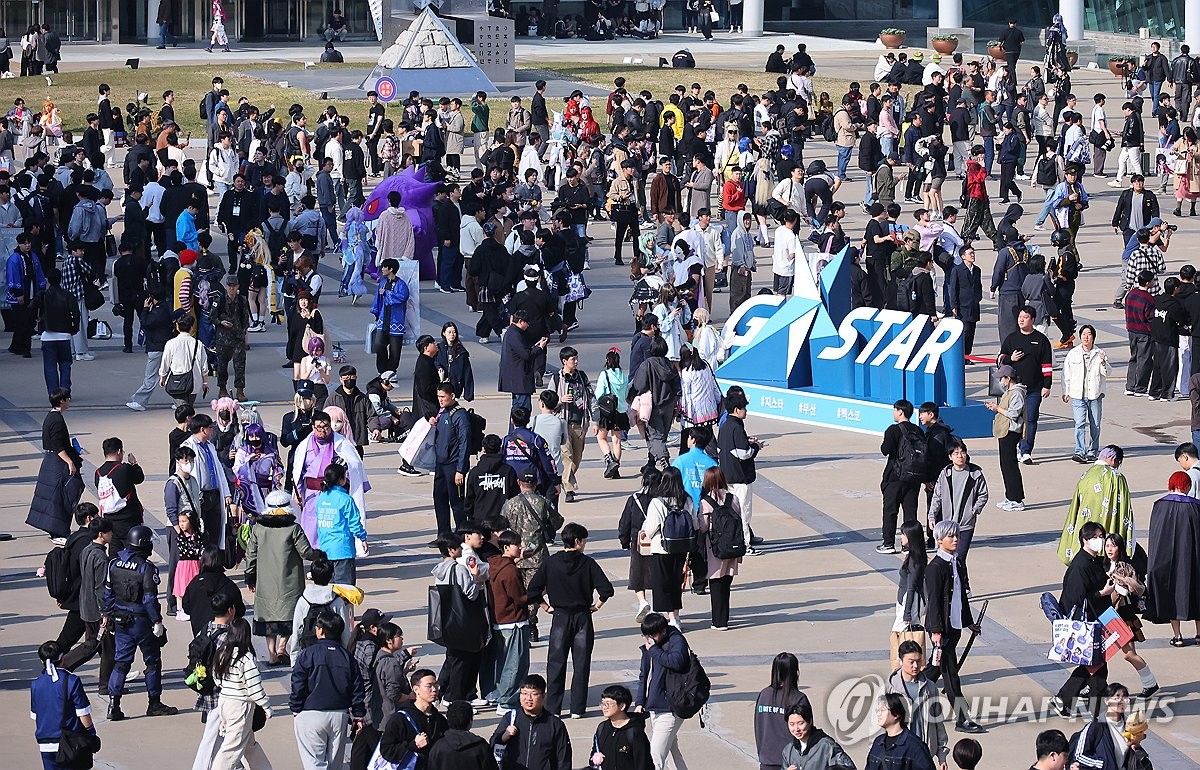 (부산=연합뉴스) 손형주 기자 = 14일 오후 부산 해운대구 벡스코 광장이 지스타2025에 참가한 관람객들로 북적이고 있다. 2025.11.14 handbrother@yna.co.kr