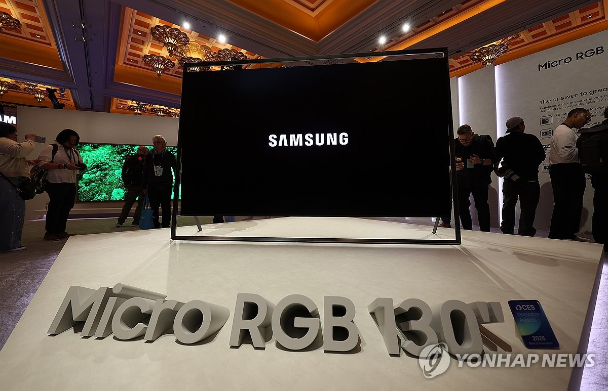 (라스베이거스=연합뉴스) 김성민 기자 = CES 2026을 앞둔 4일(현지시간) 미국 네바다주 윈 호텔에서 열린 삼성전자 '더 퍼스트룩' 전시장에 130인치 마이크로 RGB TV가 전시돼 있다. 2026.1.5 ksm7976@yna.co.kr