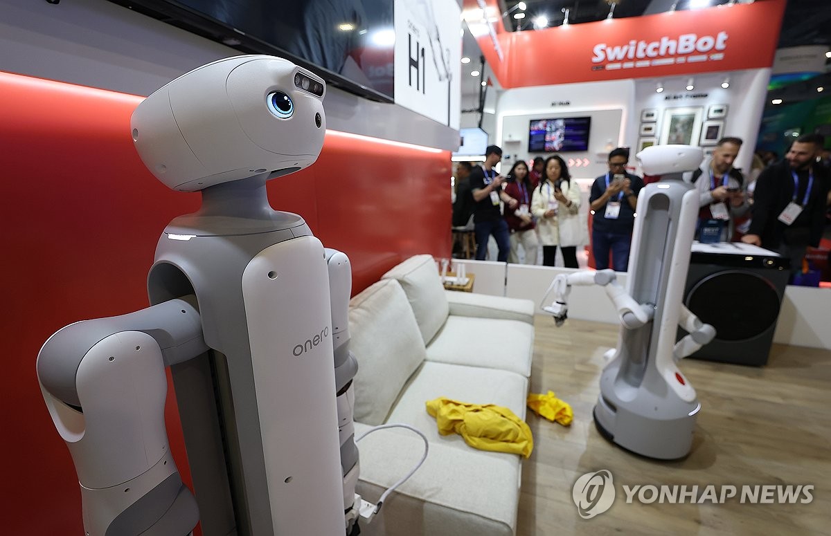 (라스베이거스=연합뉴스) 김성민 기자 = CES 개막 이틀째인 7일(현지시간) 미국 네바다주 라스베이거스 베네시안 컨벤션센터의 중국 기업 스위치봇 부스에 홈 로봇이 전시돼 있다. 2026.1.8 ksm7976@yna.co.kr