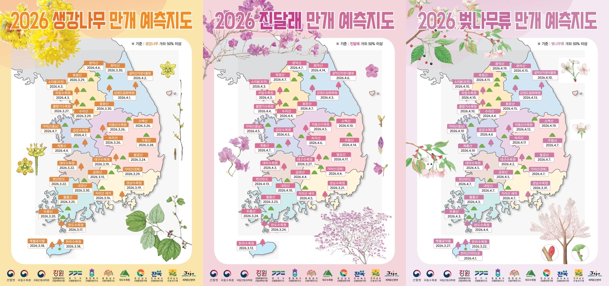 이는 지난해 실제 관측 결과인 생강나무 3월 30일, 진달래 4월 7일, 벚나무류 4월 8일보다 빠른 시기로, 봄철 기온 상승 영향이 반영된 것으로 분석된다.