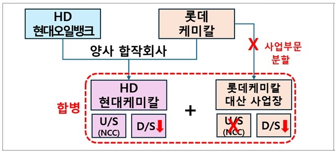 정부 승인에 따라 롯데케미칼은 충남 대산 사업장을 물적 분할한 뒤 HD현대케미칼 대산 사업장과 합병해 통합 신설법인을 만드는 절차에 들어간다.
