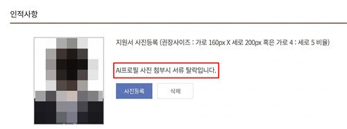 그러면서 "AI는 하나의 도구에 불과하다"며 "보정과 생성의 경계를 명확히 구분하기 어려운 만큼 AI 증명사진을 일괄적으로 탈락 사유로 삼는 것은 현실적으로 모호한 기준이 될 수 있다"고 지적했다.