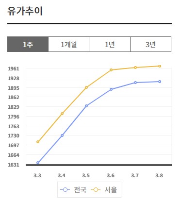 최근 하루 수십 원씩 오르던 것과 비교하면 상승 폭이 크게 둔화한 것으로, 정부의 엄중 경고에 가격 상승세가 다소 진정되는 흐름이라는 분석이 나온다.