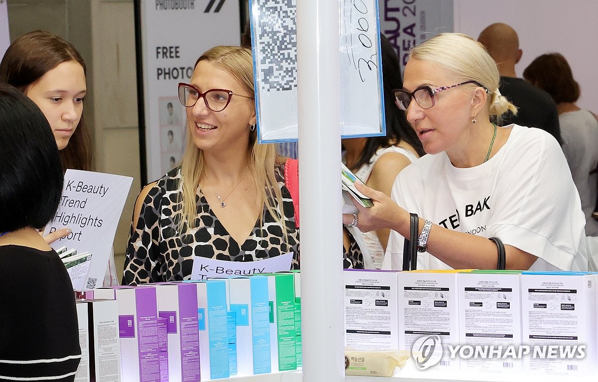 (고양=연합뉴스) 김병만 기자 = 11일 경기도 고양시 킨텍스 제2전시장에서 열린 '2025 K-뷰티 엑스포 코리아'에서 외국인 관람객들이 뷰티용품들을 살펴보고 있다. 2025.9.11 kimb01@yna.co.kr